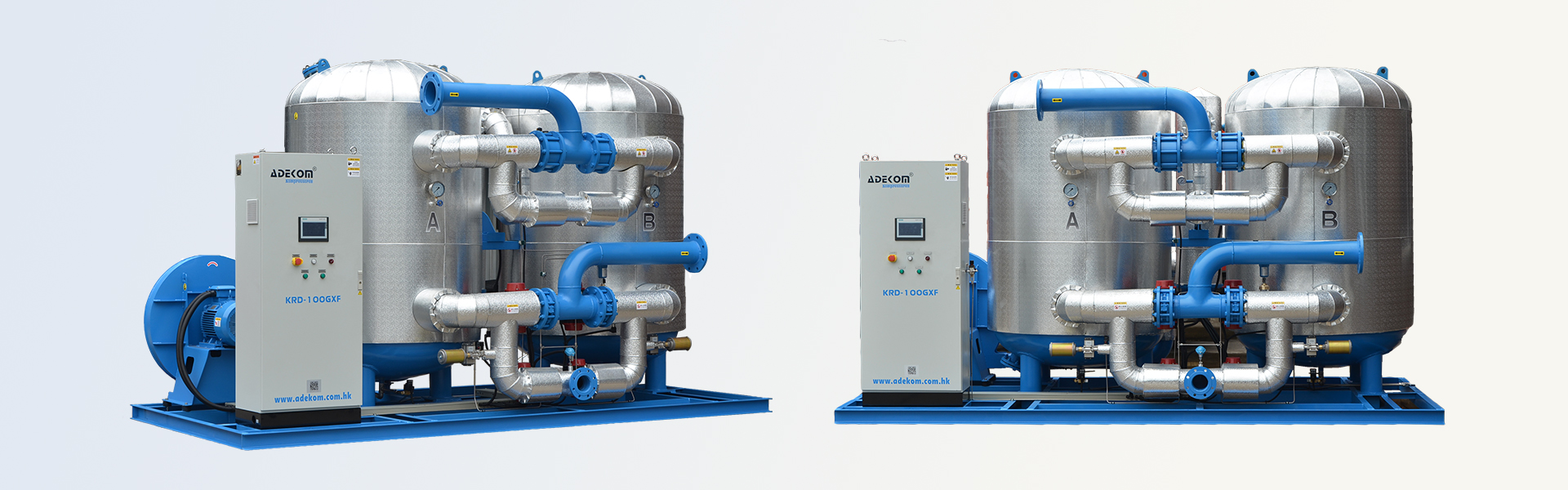 The Zero Purge Blower Heated Adsorption Dryer is an advanced energy-efficient solution designed to optimize drying performance without consuming compressed air during the regeneration process. Utilizing a blower, the system draws ambient air to heat the adsorbent and desorb moisture. During the cooling phase, hot air circulates through an independent high-efficiency cooler and the regeneration tower in a closed-loop cycle, ensuring seamless cooling without any compressed air consumption. This innovative approach significantly reduces energy consumption and operating costs.